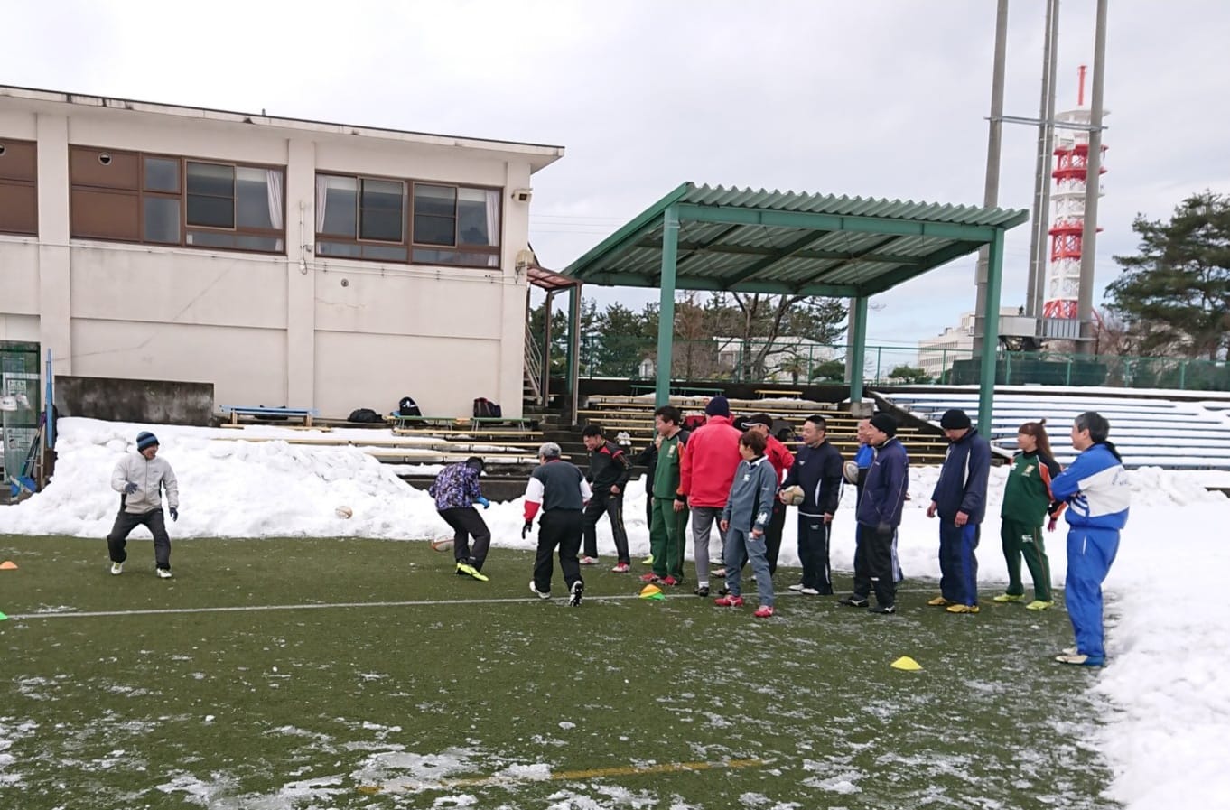 雪の中で練習を行いました。